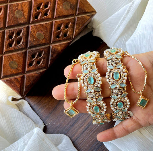 Indian Pakistani Gold Openable Karas || Nauratan Zircon Stones