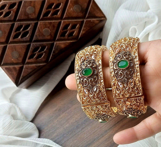 Bangle Openable Kara Set || Gold Plated Wide Kara Pair || Bangles with Zircon Stones