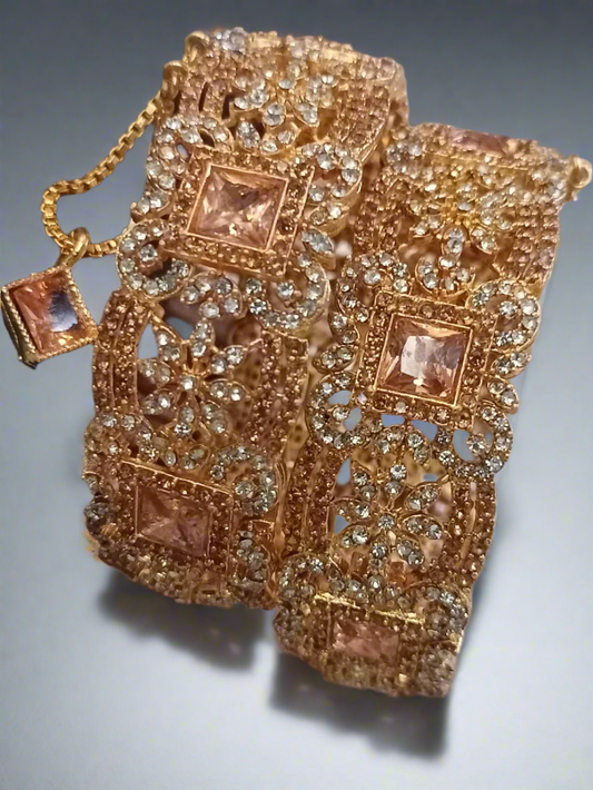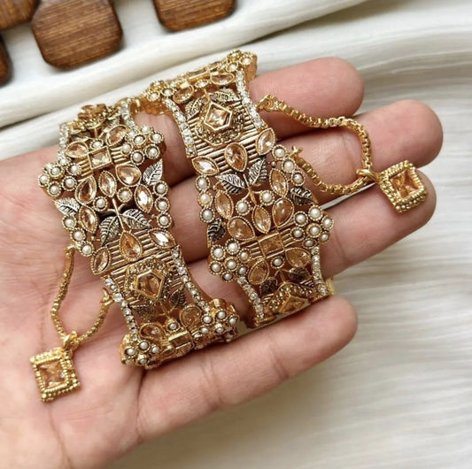 Indian Pakistani Gold Plated Wide Kara Set With Zircon Stones