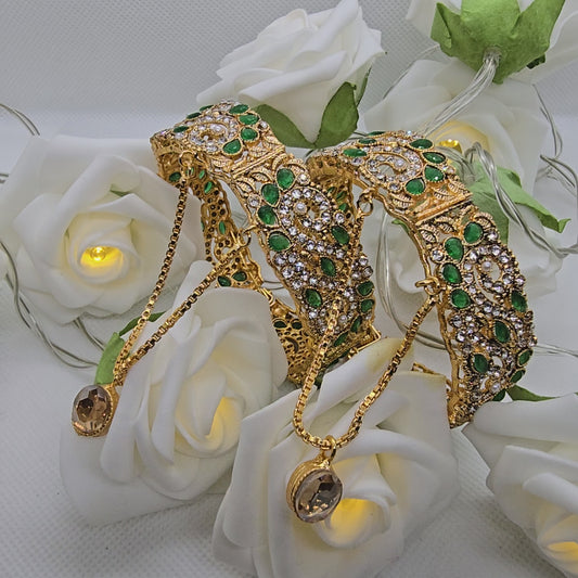 Pakistani/ Indian/ Asian Openable Kara Pair || Gold Plated Karas with Zirconia