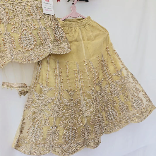 Eid Collection 2025 | Beige Colour Embroidered Shirt with Lehnga Girls Party Wear | Perfect for Eid, Wedding & Party wear