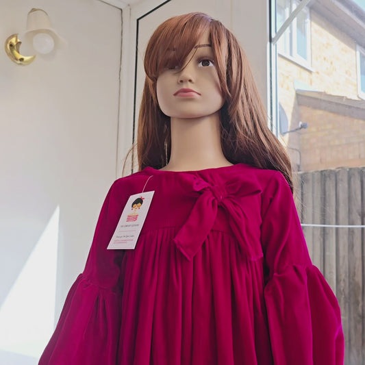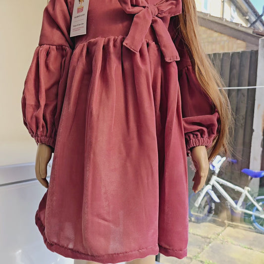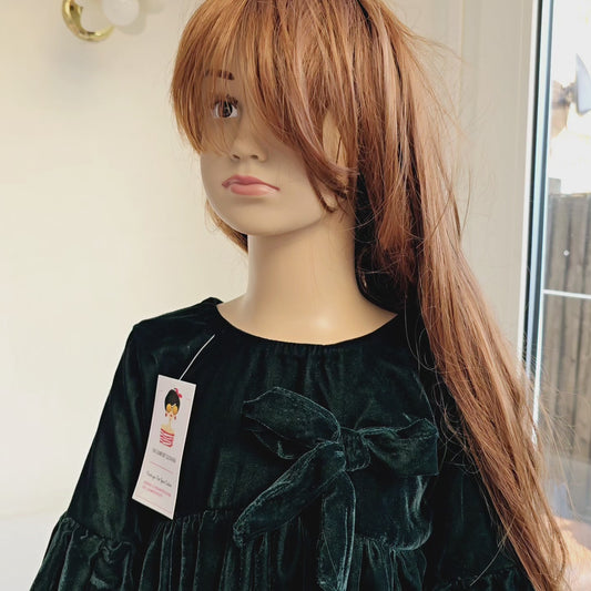 Baby Girl Bow Velvet Frock || Bottle Green Gathering Kids Western Ethnic Wear
