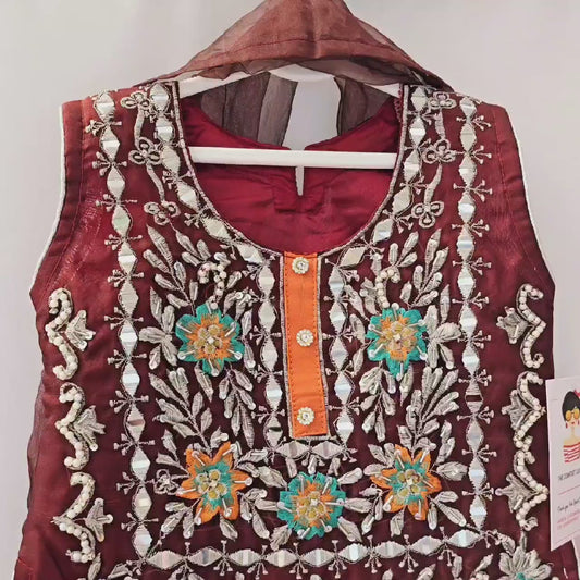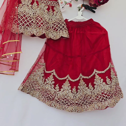 Eid Collection 2025 | Blood Red Colour Embroidered Shirt with Lehnga Girls Party Wear | Perfect for Eid, Wedding & Party wear