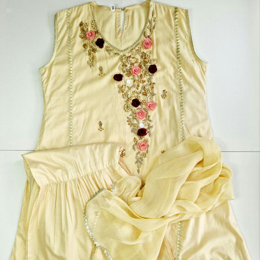 Eid Collection 2025 | Beige Colour Embroidered Shirt with Lehnga Girls Party Wear | Perfect for Eid, Wedding & Party wear