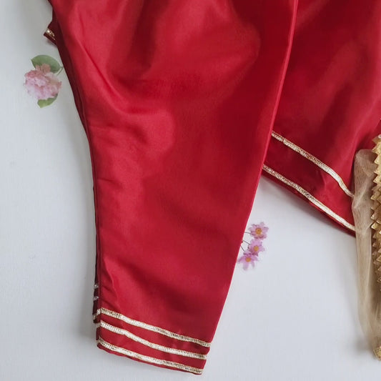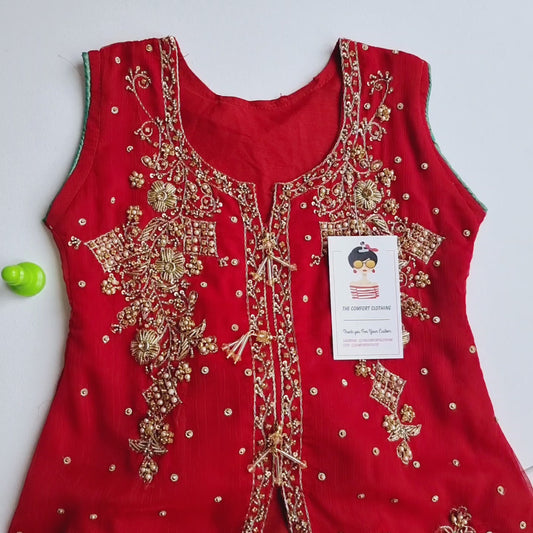 Indian Pakistani Dress | Red Chiffon Frock and Trouser | Shalwar Kameez | Girls Embroidered Suit Kids Ethnic Wear Perfect for Diwali & Eid