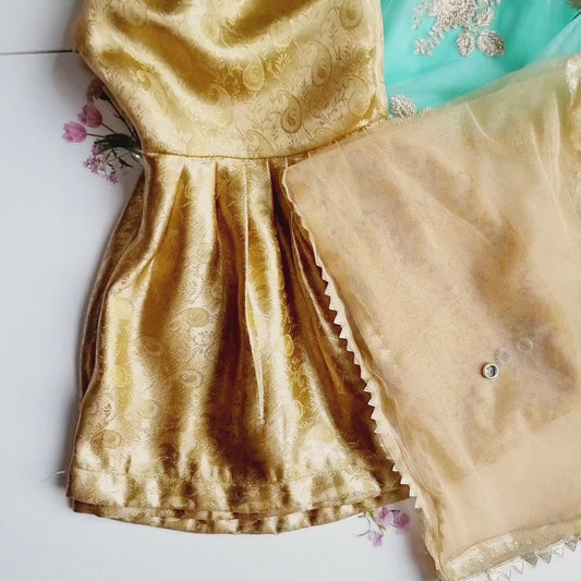 Sea Green Frock Baby Girl Dresses Traditional Dress Pakistani Suit Sharara Girls Party Wear | Sharara with Frock