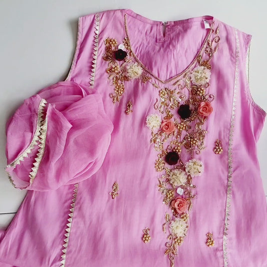 Pakistani Girl Embroidered Shalwar Kameez | Girls Lawn 3Piece Embroidered Sharara Kameez | Girl Full Embroidered Shirt with Sleeves (Inside)
