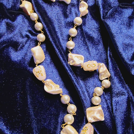 Fusion Pearl Long Necklace- Sabyasachi, Indian & Pakistani Jewelry, Antique Mala
