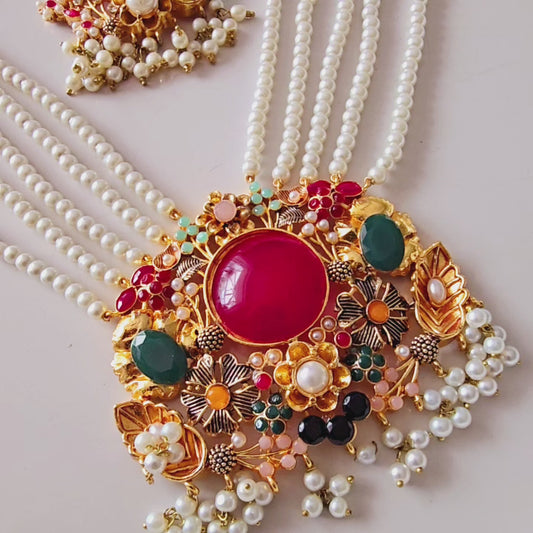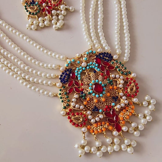 Kundan Pendant Layered Maala Set || Pakistani/ Indian Nauratan Haar