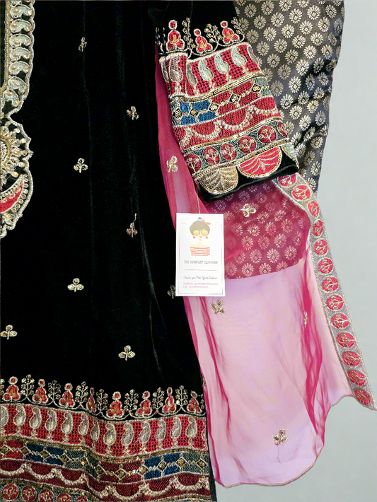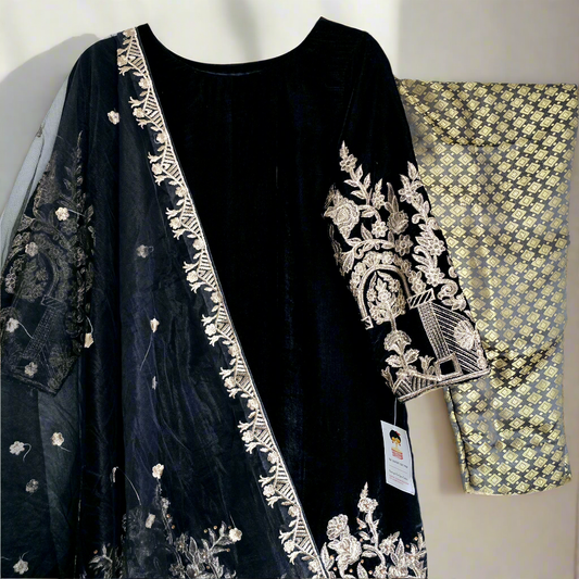 Pakistani Velvet Embroidered Stitched Suit 3 PC Shalwar Kameez