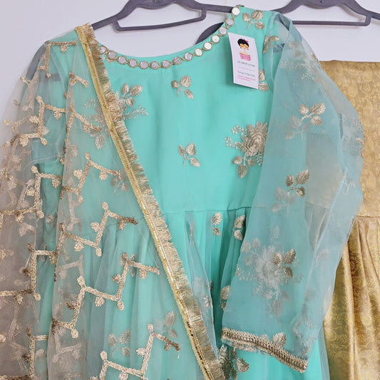 Sea Green Traditional Dress Pakistani Suit Sharara Party Wear | Sharara with Frock